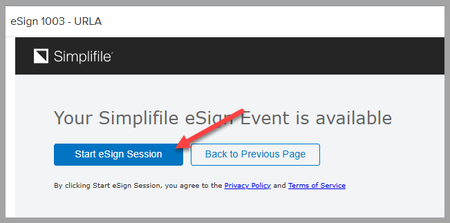 Click Start eSign Session to proceed with the eSign process.