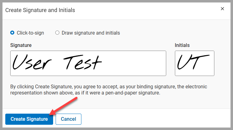 Click Create Signature.