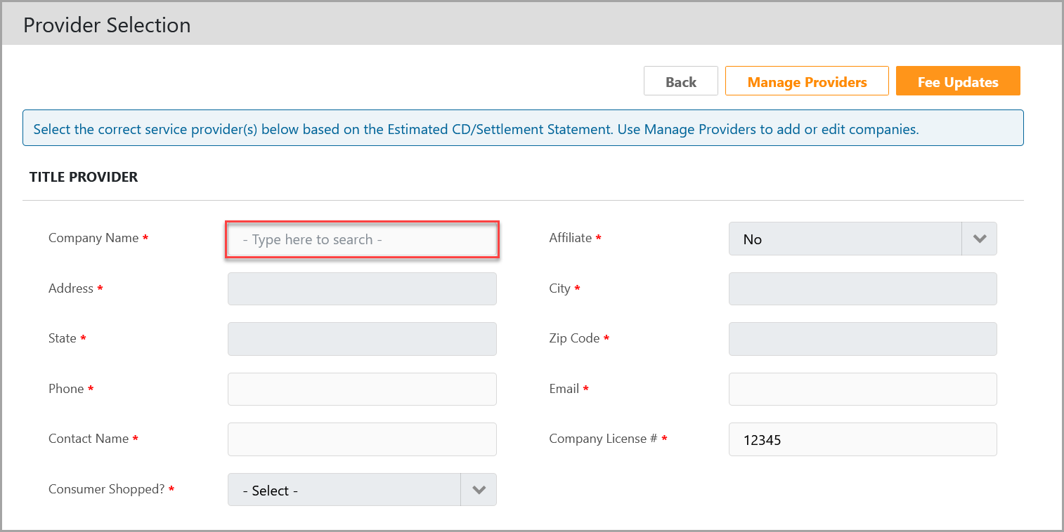 - For Closing Disclosures, if you selected YES for Escrow and Attorney provider, repeat the steps to add the additional providers.