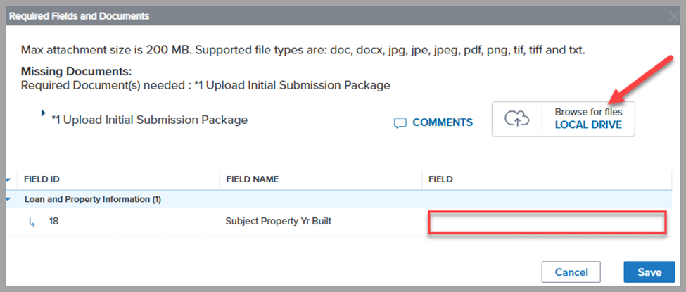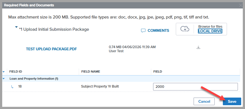 You’ll be prompted to upload your Initial Submission Package as well as complete any missing data fields.