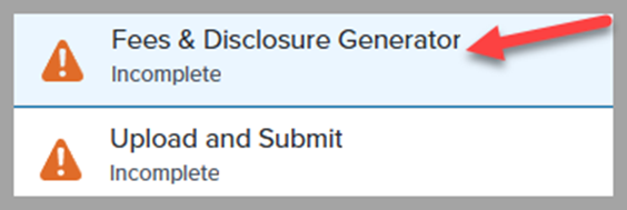 As you continue the Guided Workflow process, you’ll be directed to Fees & Disclosure Generator.